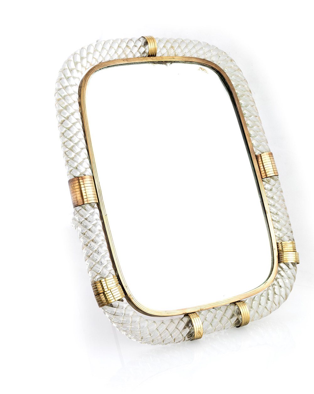 Lotto 180 | Specchio da appoggio con cornice in vetro di Murano a torciglione con foglia...