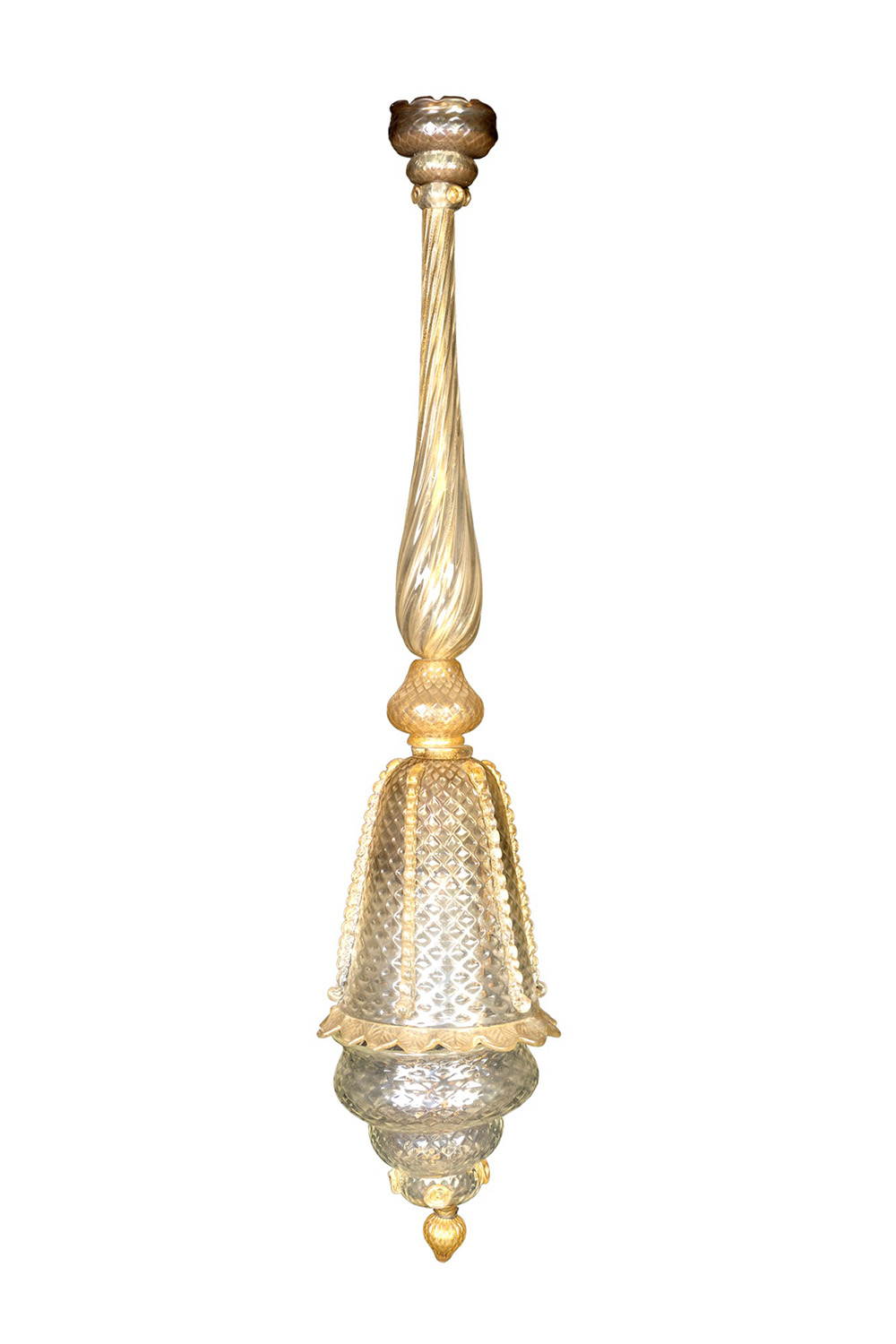 Lotto 187 | Lampadario veneziano in vetro soffiato e foglia d'oro dettagli in ottone...