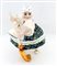 Figura di bambina con scopa in mano in terraglia a colaggio con decoro...