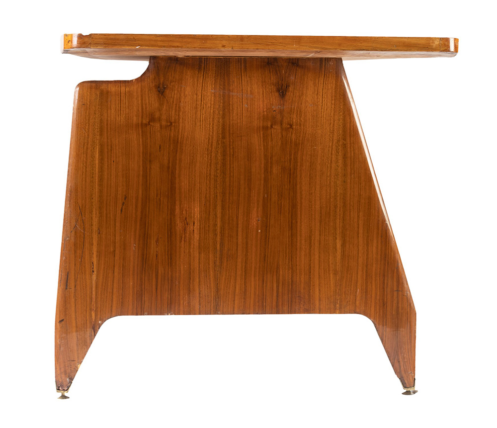 Scrivania in noce con quattro cassetti nel lato destro , dettagli in ottone 1950 Ccm77x170x85