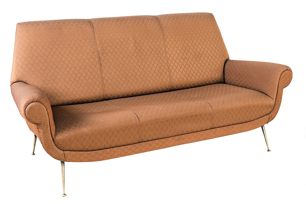 Divano tre posti struttura in legno rivestimento in tessuto originale sostegni in ottone Prod . Minotti 1950 cm180x70 88x180