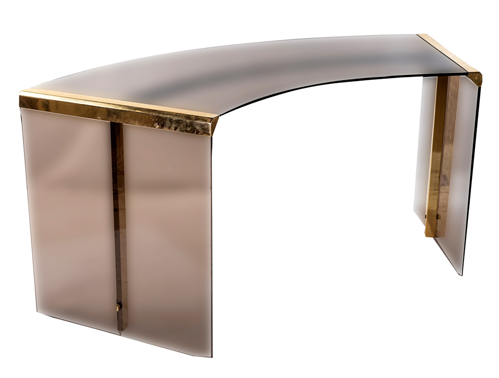 Scrivania semicircolare in vetro temperato dettagli in ottone 1970 74x1.66x65