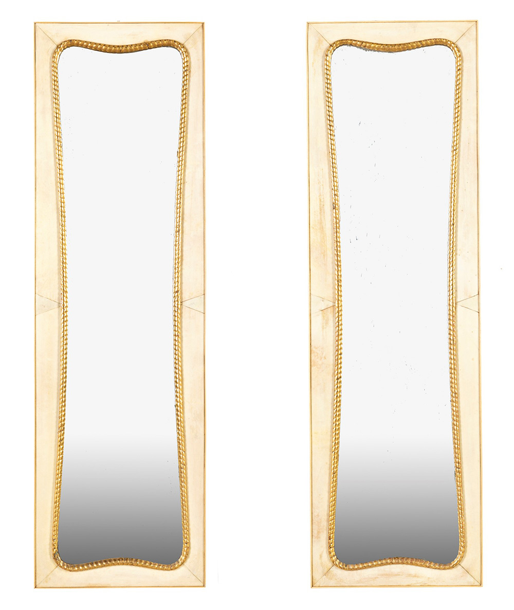 Lotto 215 | Coppia di Specchiere con cornice rettangolare in pergamena con finitura...