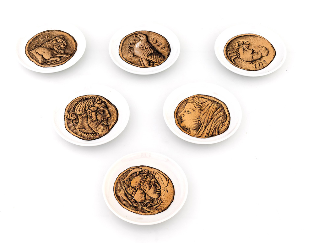 Sotto bicchieri in porcellana e disegni in oro per la Banca di Messina 1960...