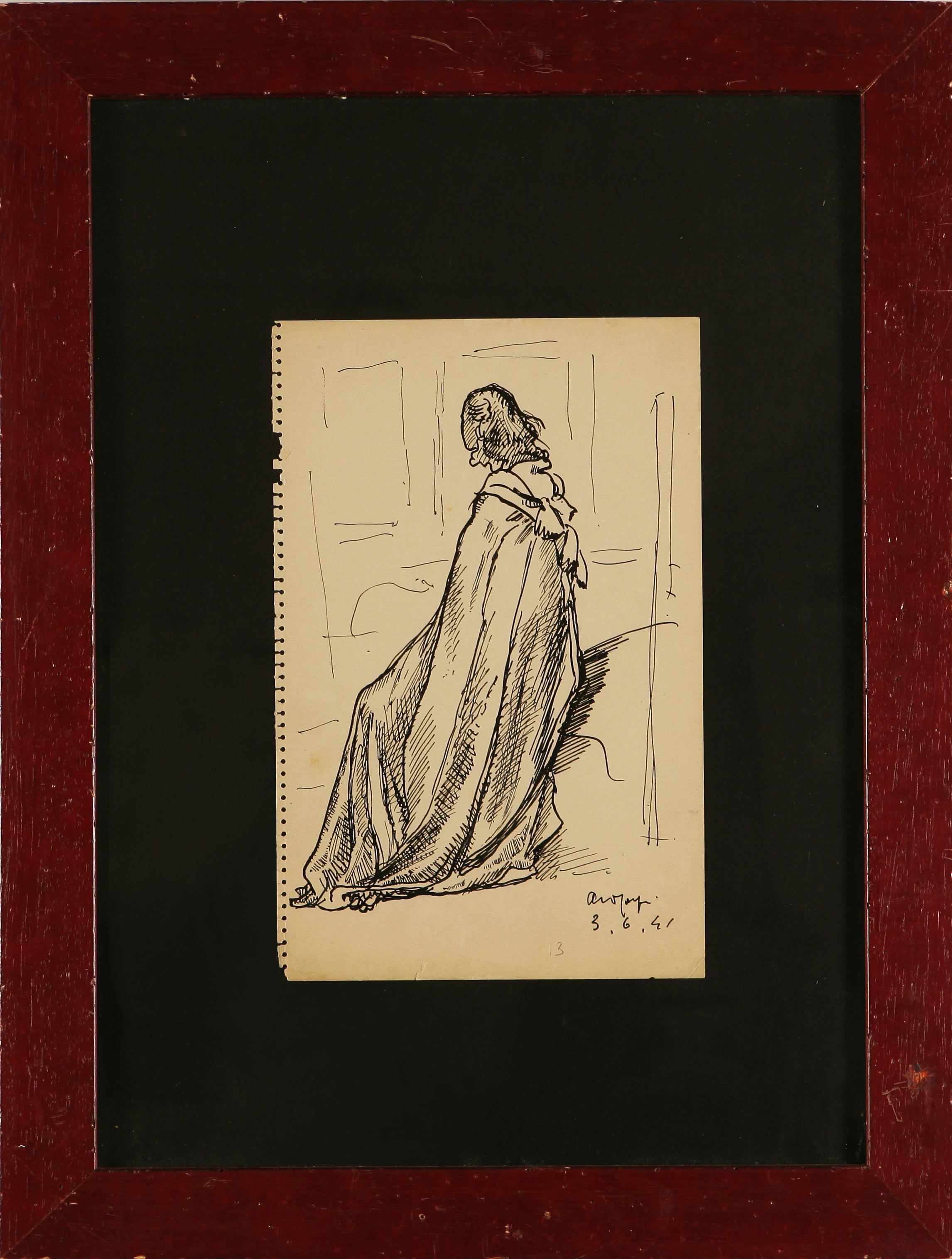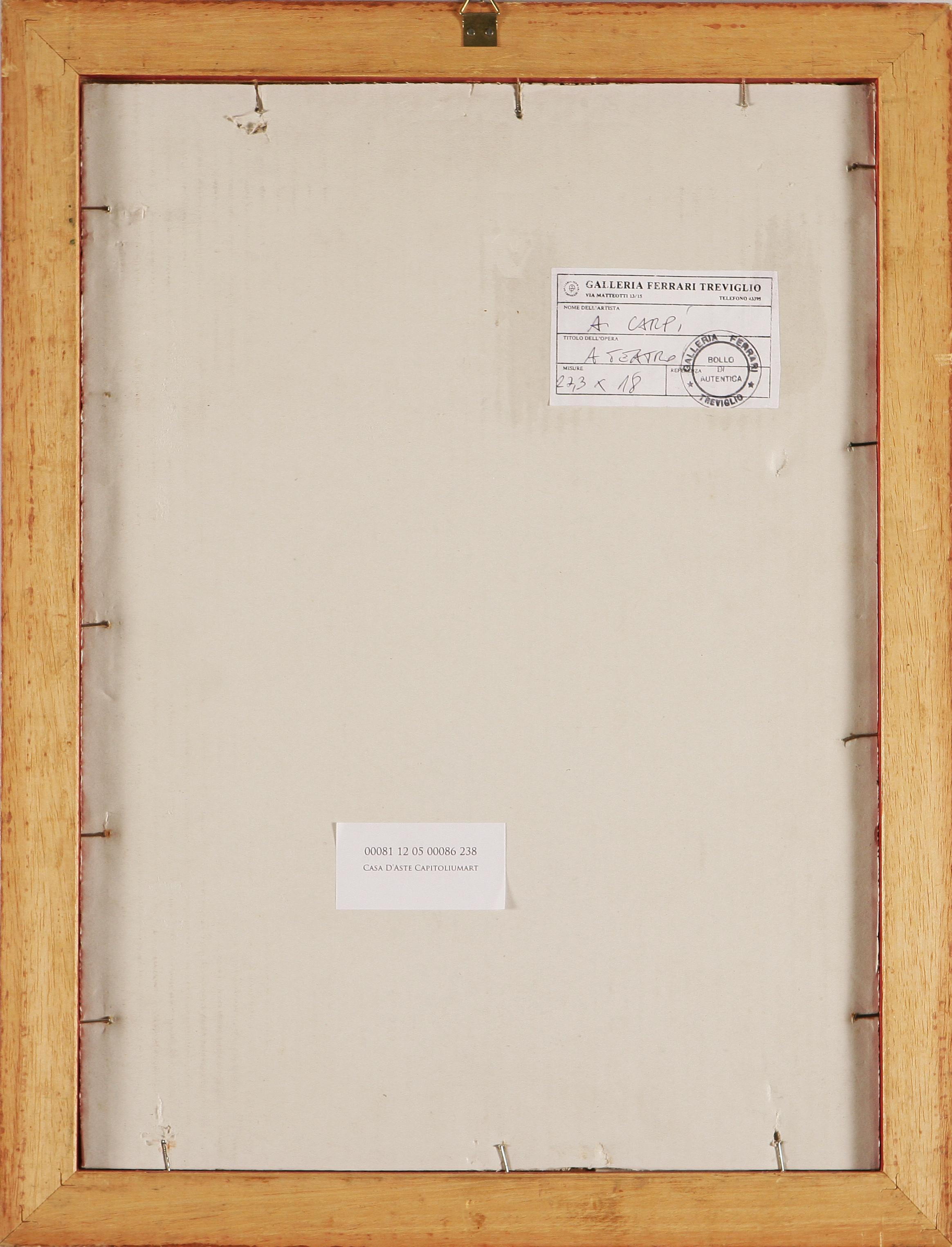 CARPI ALDO (1886 - 1973) A teatro. 1941. China su carta. Cm 17,5x27. Autentica su fotografia a cura della Galleria Ferrari, Treviglio. Al retro cartiglio Galleria Ferrari Treviglio. Firma e data in basso a destra. Cornice presente.