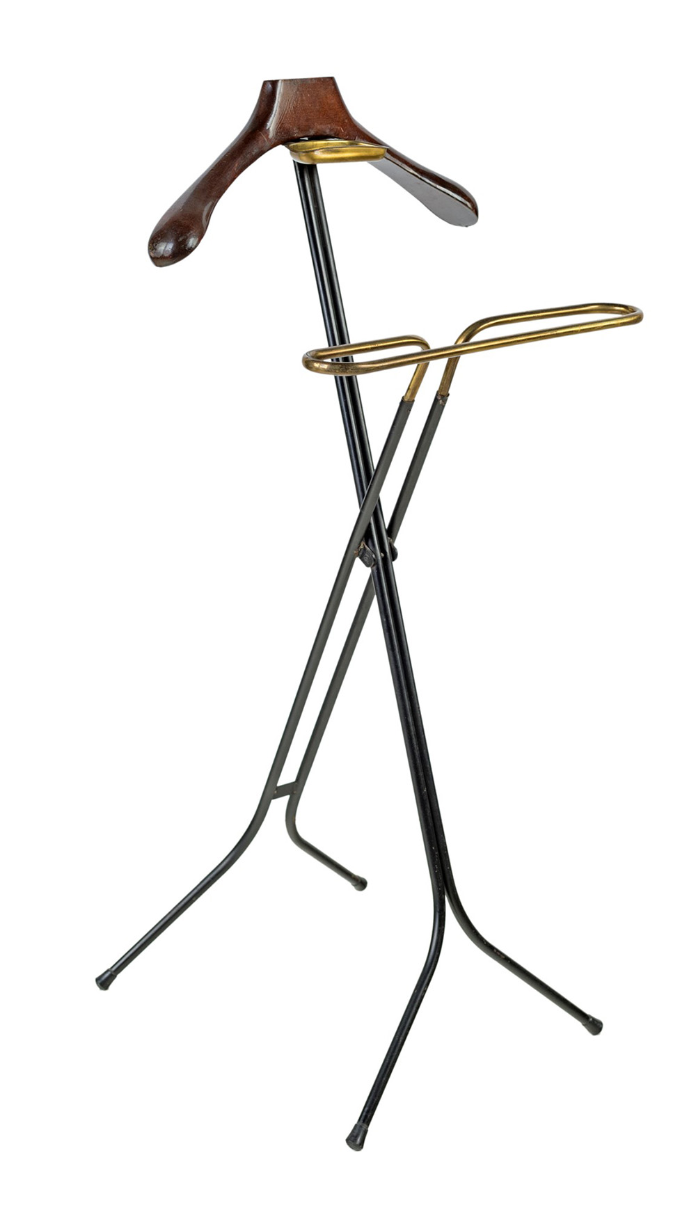 Servomuto Appendiabito indossatore struttura in ferro legno elementi in ottone 1950 cm 108x46x40