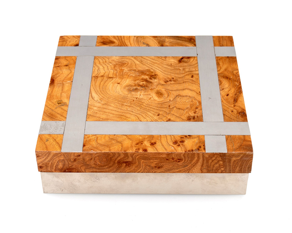 Scatola in radica di tuja e acciaio 1970 6x20x20