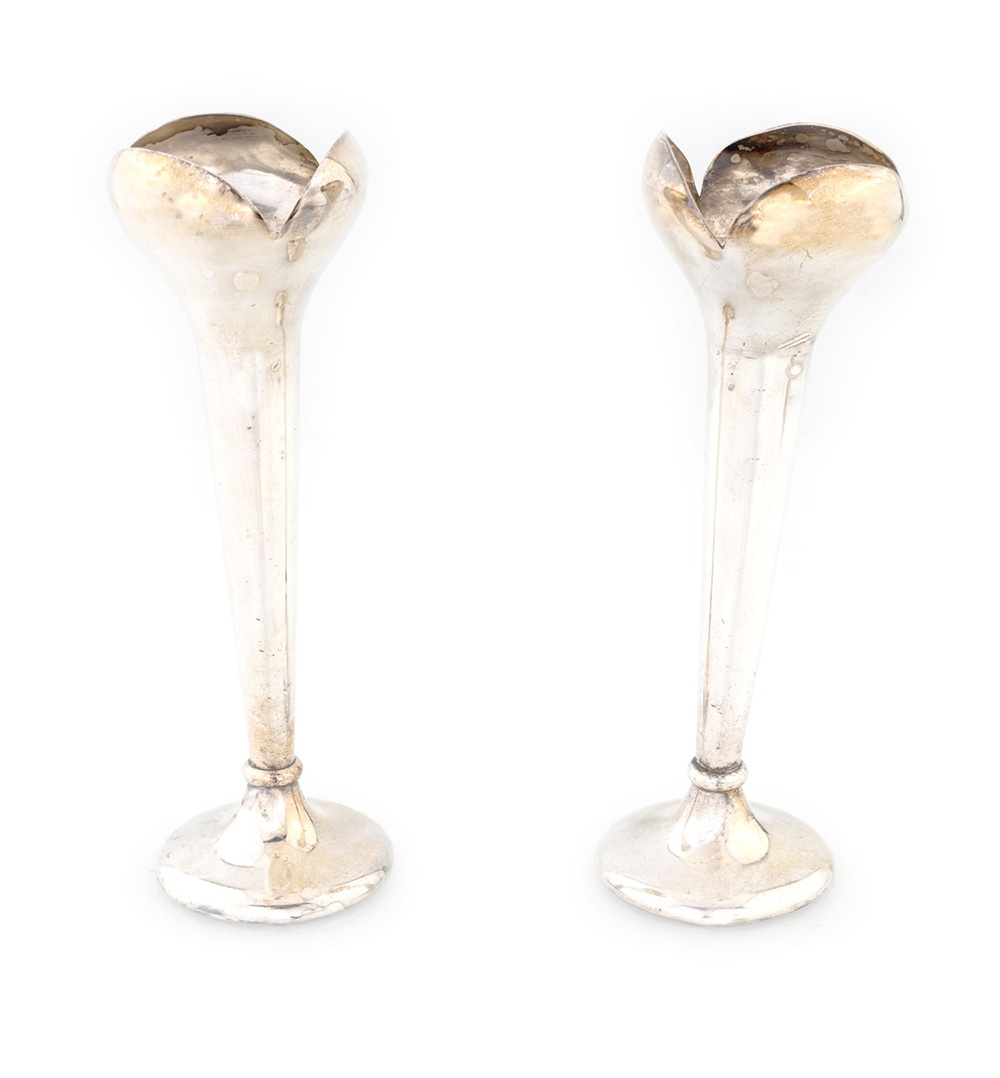 Candelieri in alpacca argentata per fratelli Calderoni marchio sotto la base 1930 altezza cm 18