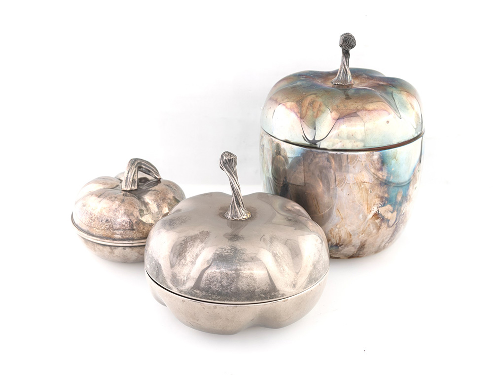 Contenitori con coperchio a forma di peperone in metallo argentato , lotto di...