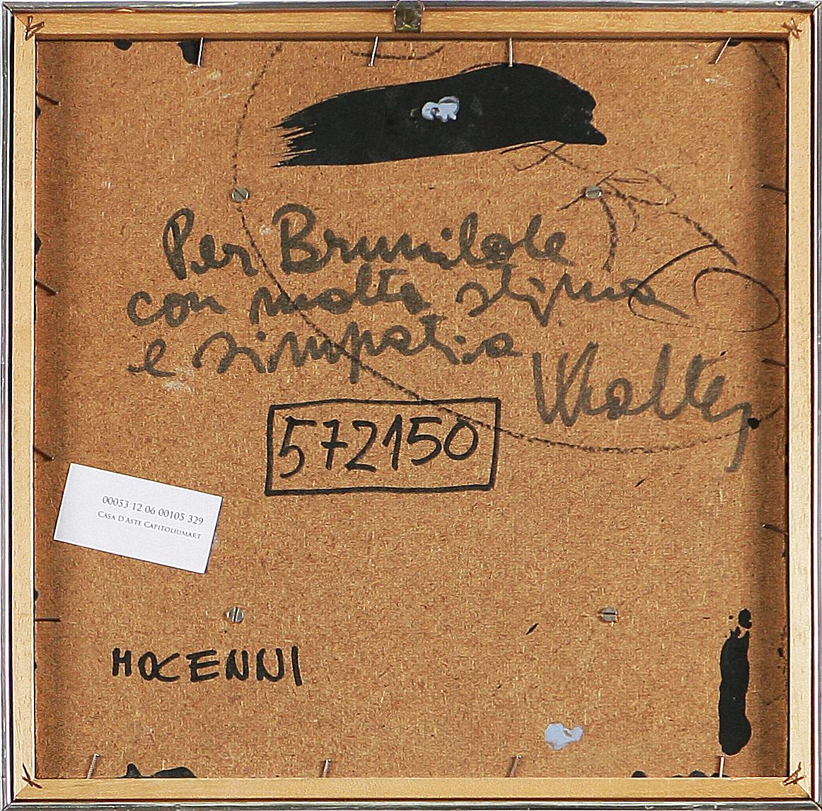 MOCENNI GUALTIERO (n. 1935) Senza titolo. 1975. Tecnica mista su carta. Cm 20x20. Al retro dedica e relativo numero di repertorio. Firma e data in basso a sinistra. Cornice presente.