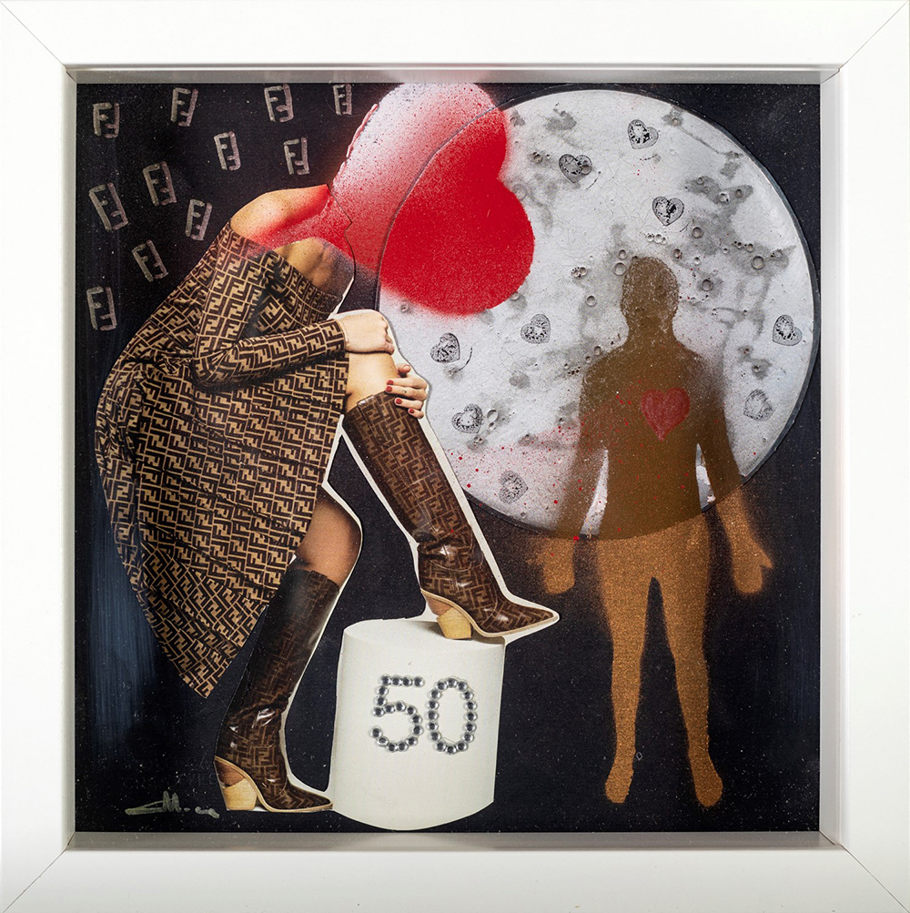 Ferdinando Colloca Frosinone 1966-0, Fendi 50 Moonlove 2019 Tecnica mista su compensato cm 23x23 Firma e timbro a secco sul fronte. Al verso reca firma e titolo.