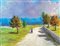 Pittore del XX secolo 0-0, Paesaggio con figura 1934 tempera e pastello su cartone cm 36x47 Firma indecifrata sul fronte.