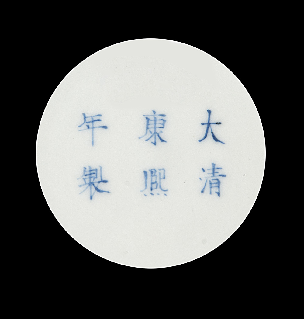 Lavapennelli a invetriatura claire-de-lune, marchio apocrifo Kangxi