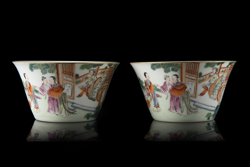 Due coppette in porcellana Famiglia Rosa con figureCina, secolo XIX(d. 11...