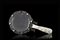 Lente di ingrandimento con manico in giada color celadon pallido scolpito con drago, la ghiera in argento brunito con inserti in pietra