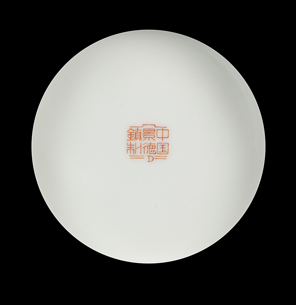 Vaso in porcellana policroma dalla forma arcaica cong decorato con paesaggio e poema composto da Mao Zedong