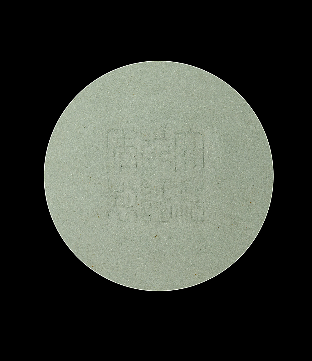 Vaso in porcellana monocroma a invetriatura celadon pallido, marchio apocrifo...