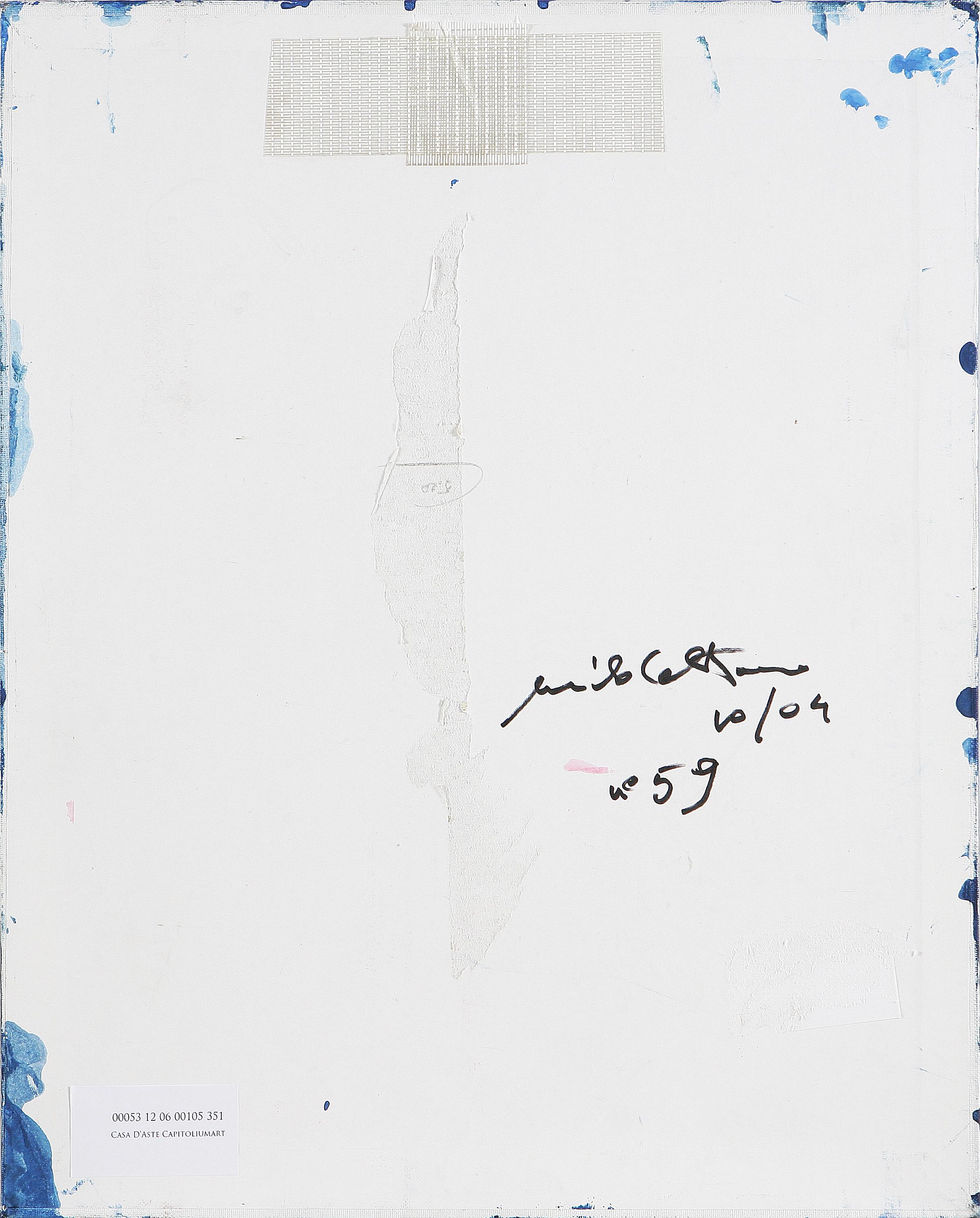 CATTANEO MILO Senza titolo. Tecnica mista su cartone telato. Cm 40x50. Al retro firma e data. Firma, data e relativo numero di repertorio a matita in basso al centro.
