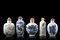 Gruppo di cinque snuff bottle in porcellana, una con marchio Daoguang in...