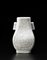 Vaso in porcellana craquelé, di forma arcaica hu, di sezione rettangolare e con doppie anse tubolari, pallida e liscia invetriatura con una raffinata craquelure
