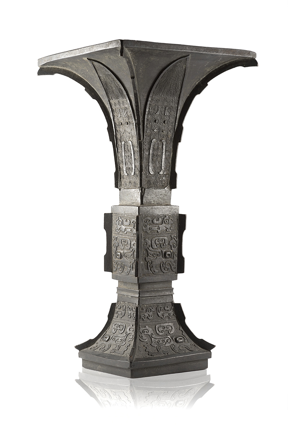 A bronze vase of archaistic form fanggu decorated with applied geometric motifs