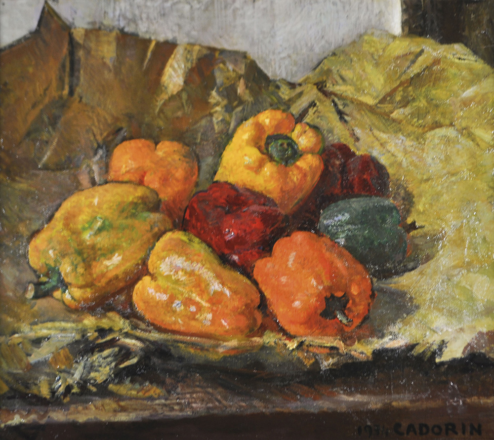 Guido Cadorin (Venedig/Venezia 1892 - 1976) Natura morta con peperoni, 1934;Olio su tela, 51,5 x 57 cmFirma e dataProvenienza: Galerie Charpentier Paris, collezione privata