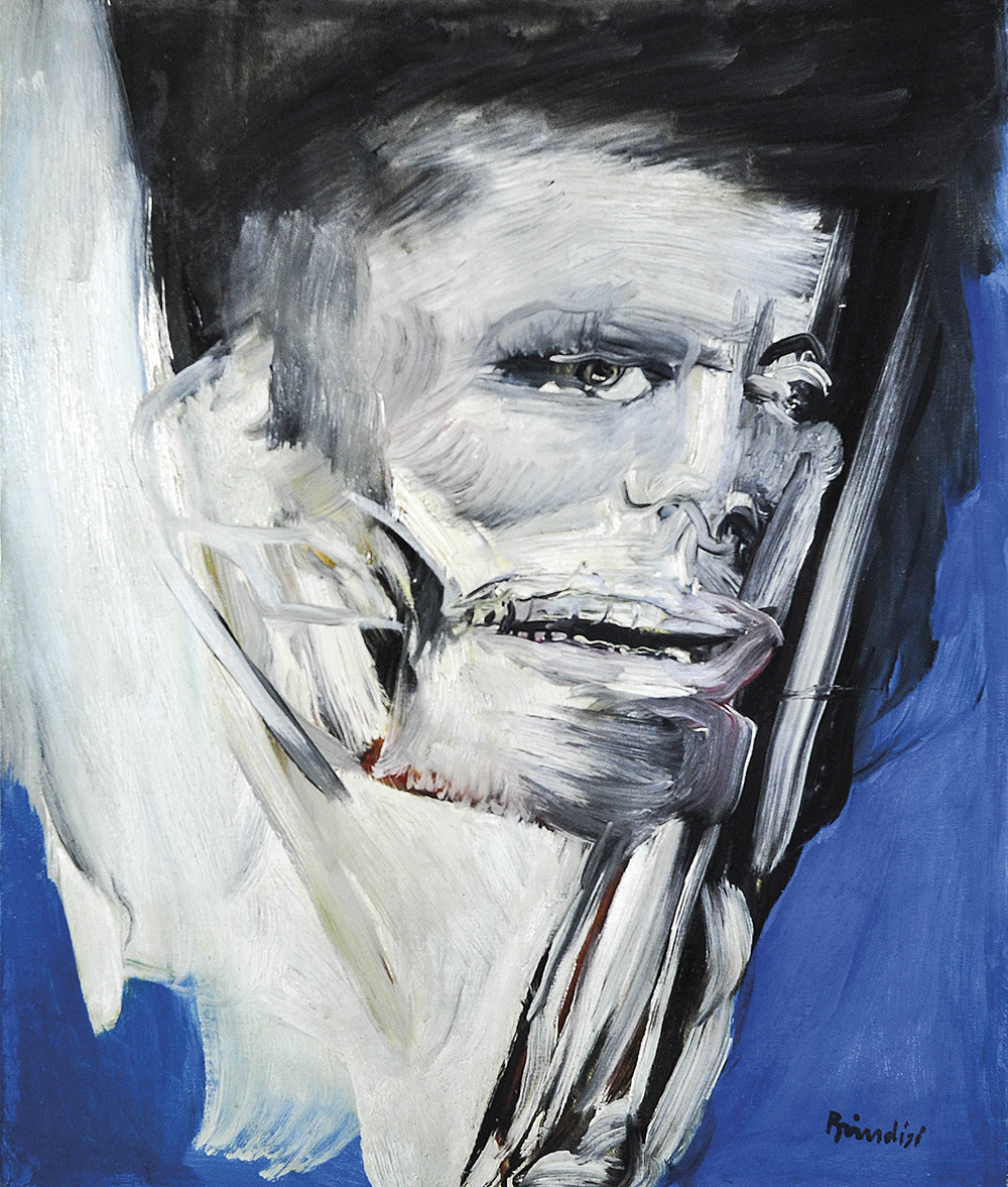 Remo Brindisi Uomo, 1960;Olio su tela, 50 x 60 cm, al retro etichetta “Fondazione Pagani – Museo d’arte moderna”, iscrizione a pennarello