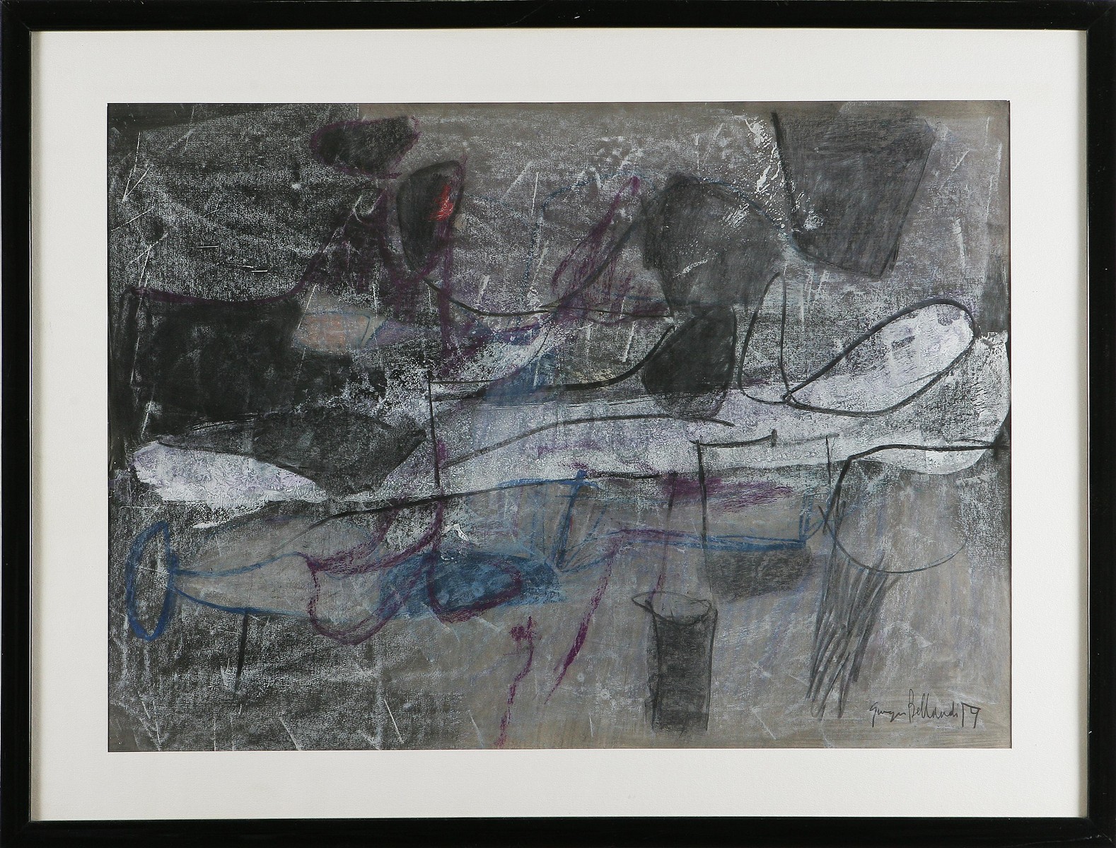 BELLANDI GIORGIO (1930 - 1976) Senza titolo. 1959. Tecnica mista su carta. Cm 69,5x50. Firma in basso a destra. Cornice presente.