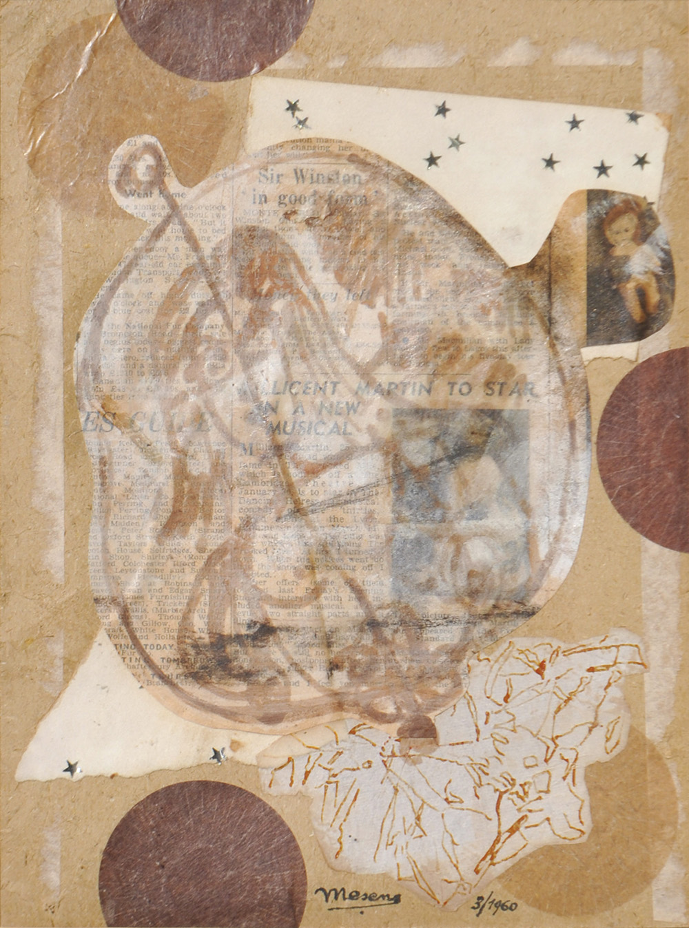 Edouard Lèon Théodore Mesens (Brüssel/Bruxelles 1903 – 1971) La principesse allemande, 1960;Collage su cartoncino, 29 x 21 cm, al retro etichetta Galleria d’Arte del Naviglio Milano.