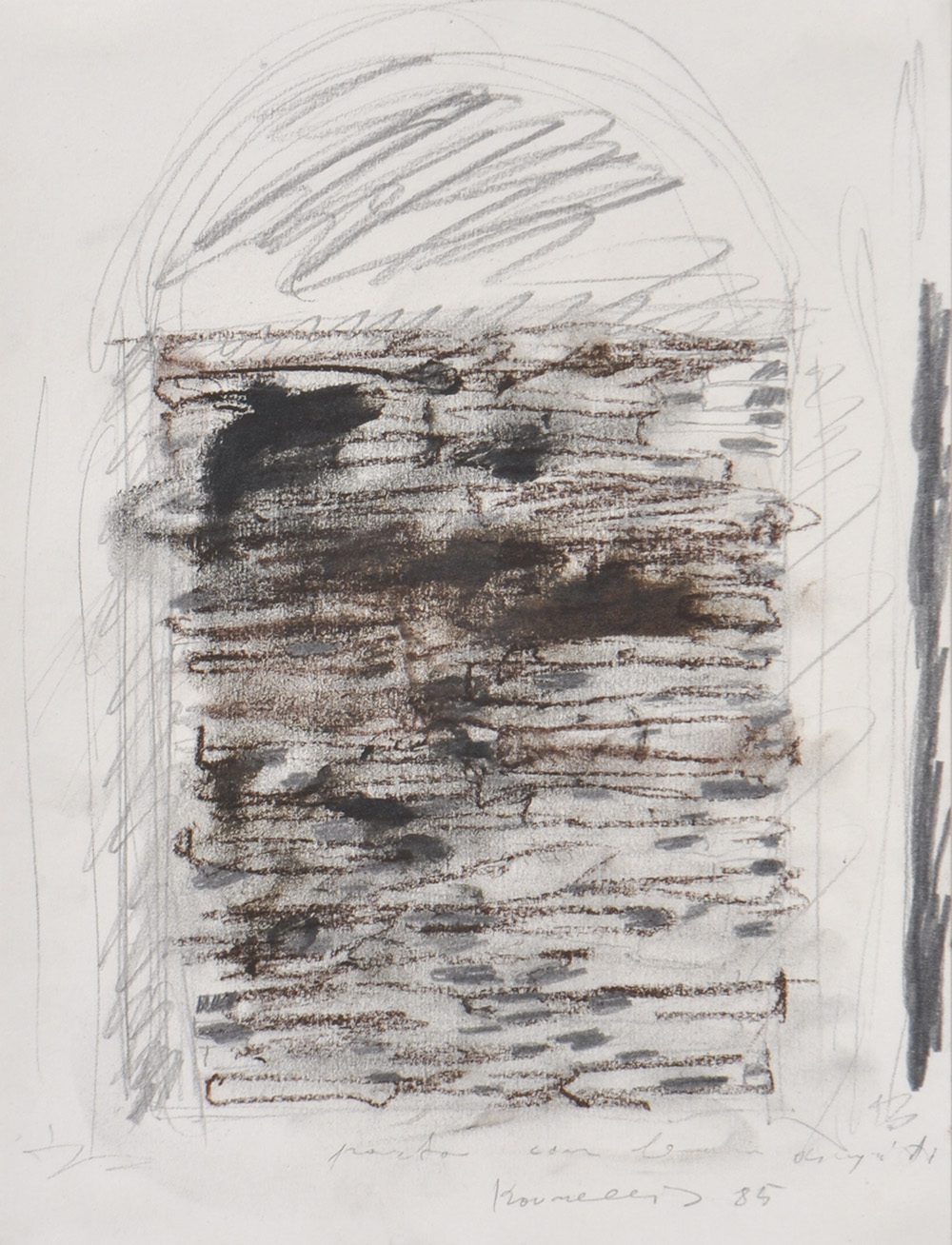 Jannis Kounellis (Piräus/Pireo 1936 – Rom/Roma 2017) Portone con lancia, 1985;Carboncino e grafite su cartoncino, 32 x 24,5 cm.