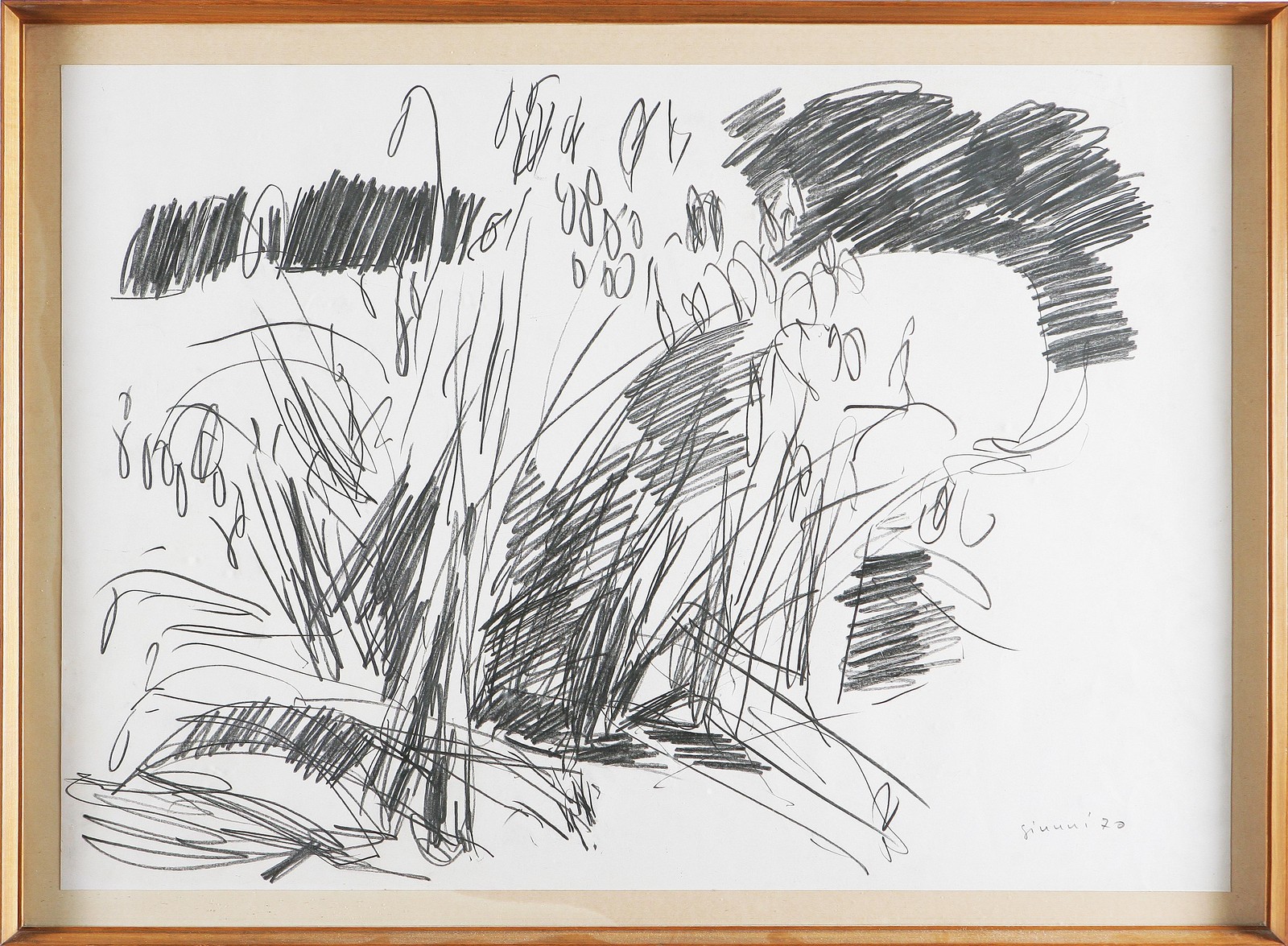 GIUNNI PIERO (1912 - 2000) Senza titolo. 1970. Carboncino su carta. Cm 70x48. Firma e data in basso a destra. Cornice presente.