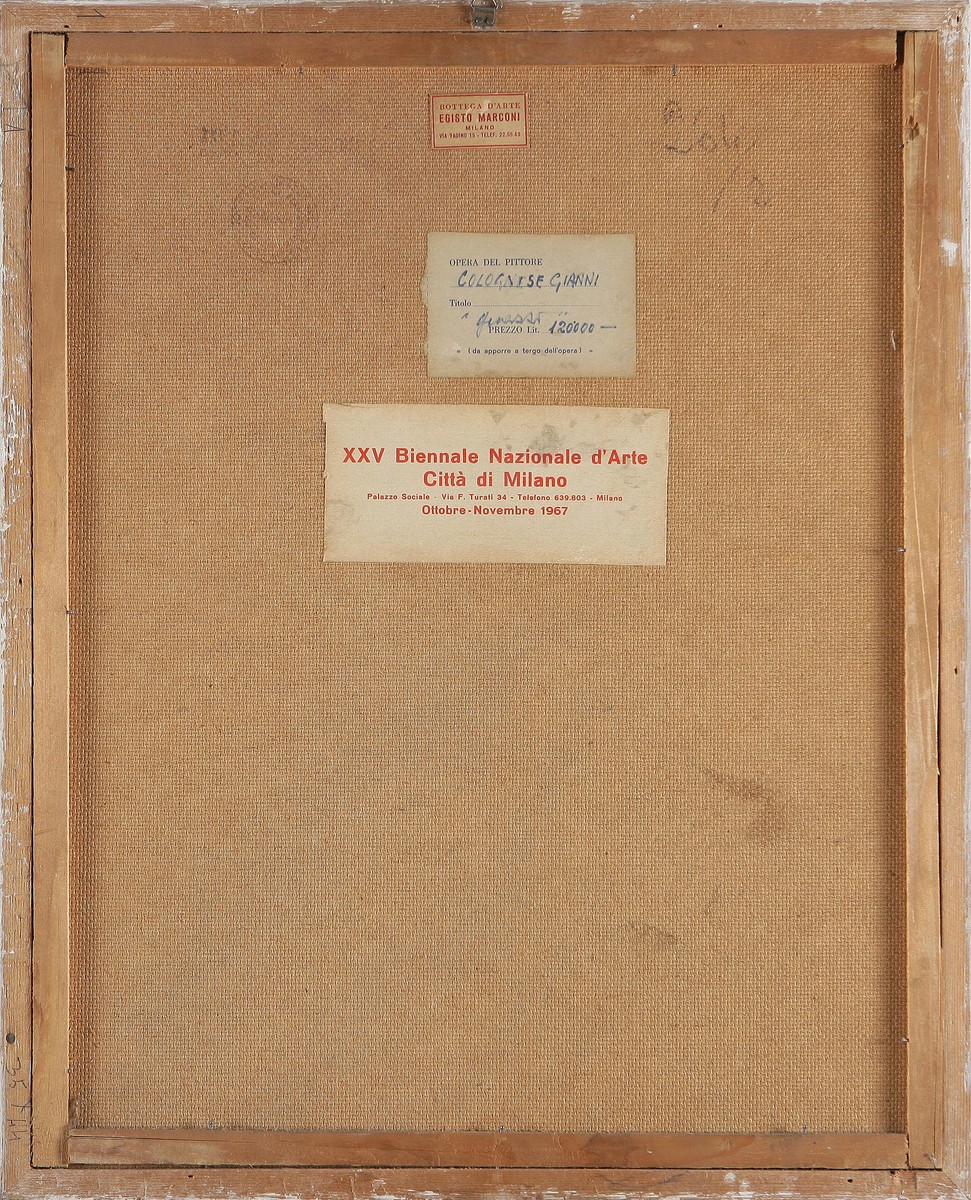 COLOGNESE GIOVANNI (n. 1901) Senza titolo. Acquerello su carta. Cm 16x25. Al retro cartiglio Bottega d'arte Egisto Marconi, Mlano; 25esima Biennale Nazionale d'arte Citttà di milano, 1967. Firma in basso a sinistra. Cornice presente.