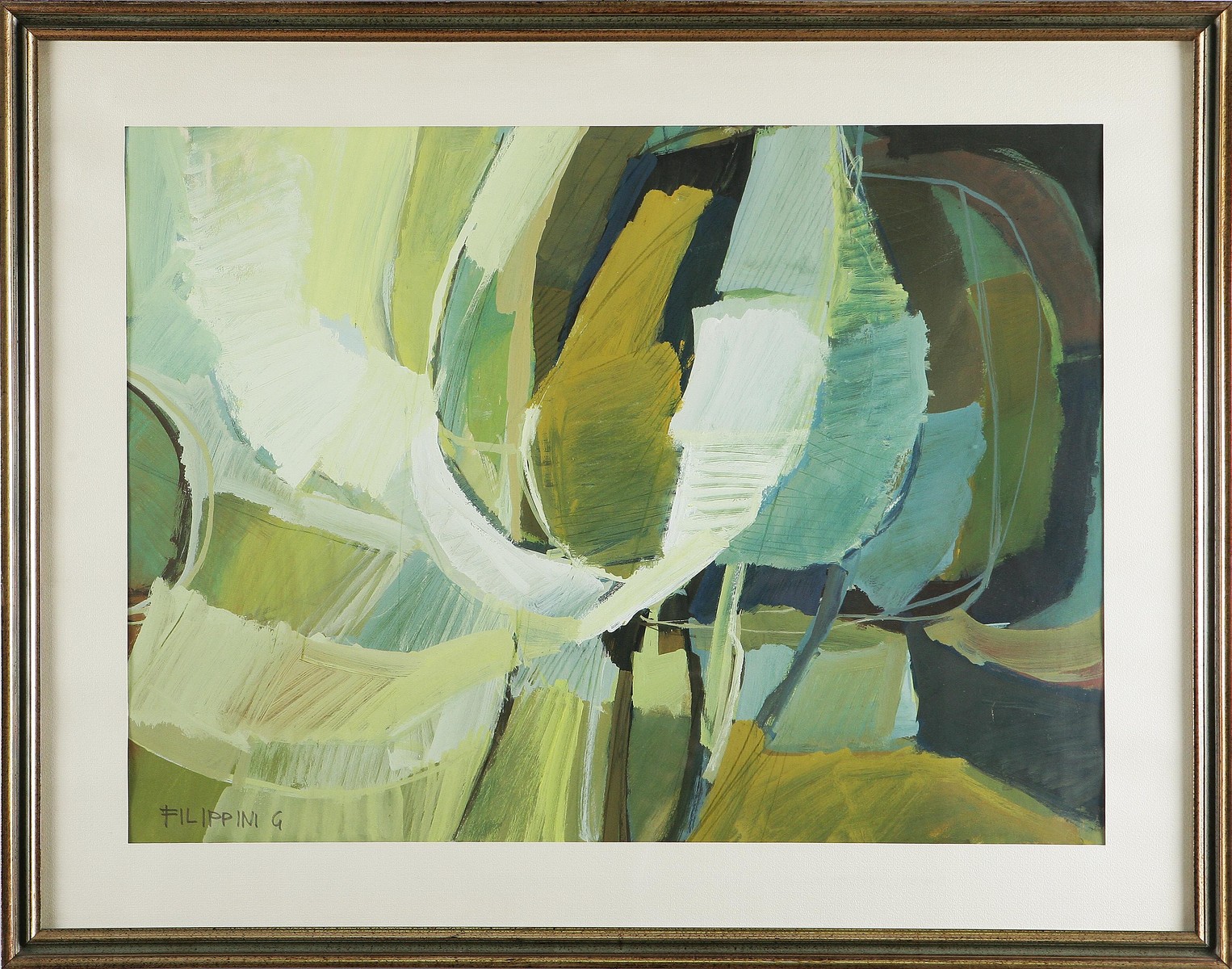 FILIPPINI GENESIO Paesaggio. 1977. Olio su carta. Cm 65x55. Firma e data in...