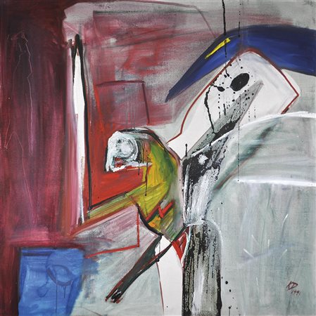 Katja Duftner (* Alpbach 1966), Senza titolo, 1991;Olio su tela, 100 x 100 cm, in cornice