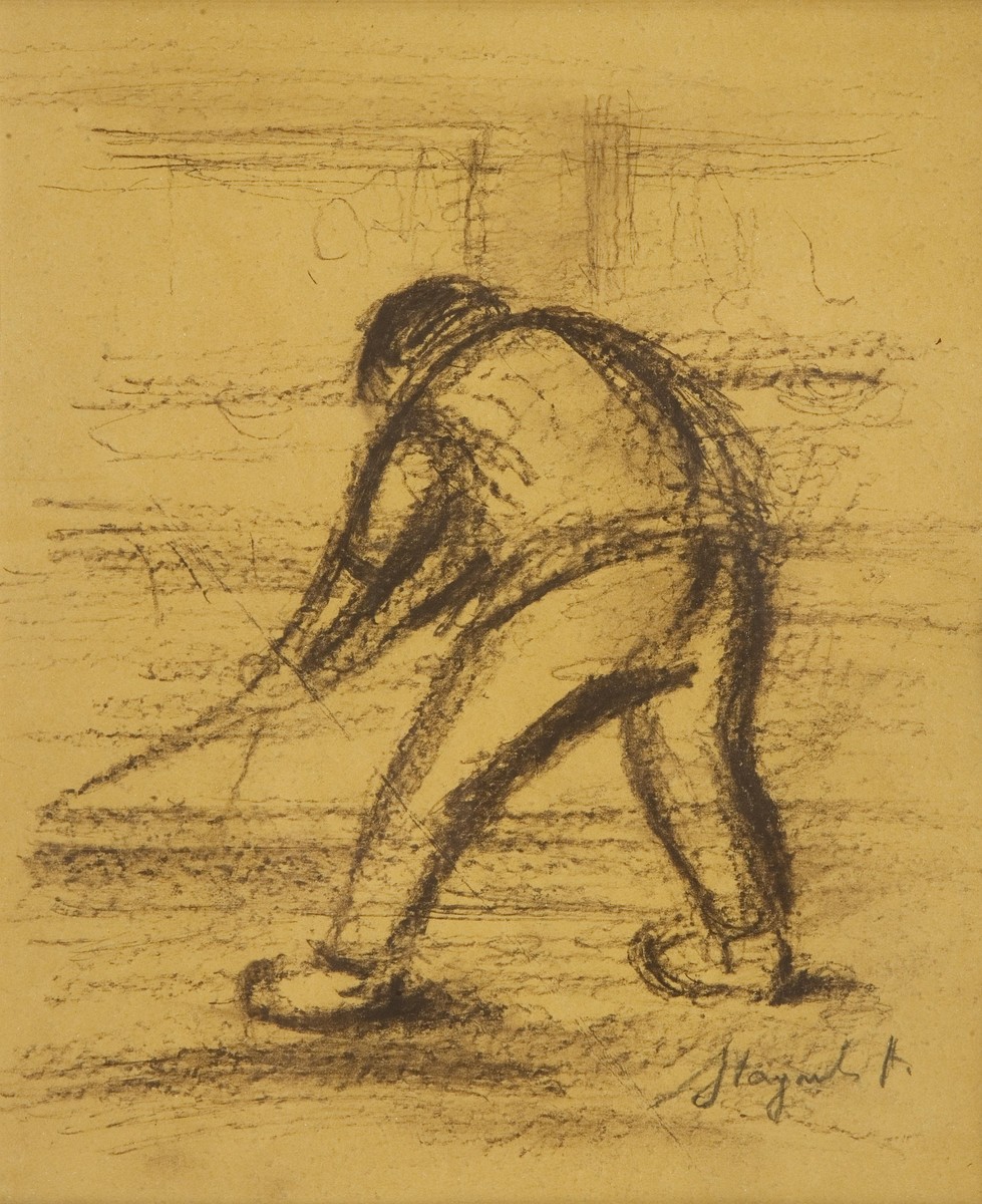 STAGNOLI ANTONIO (n. 1922) Contadino che ara. Carboncino su carta. Cm 20,5x24. Firmato in basso a destra.