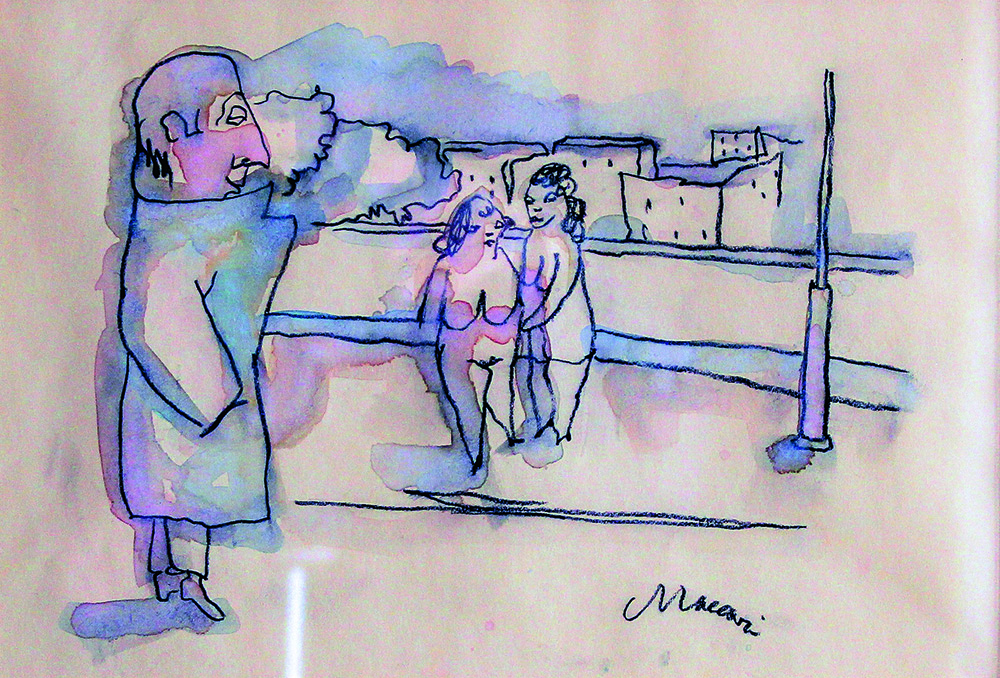 Maccari Mino acquerello su carta 20x30 Figure in strada autentica...