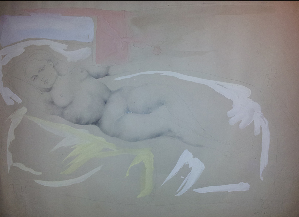 Lotto 14 | Attardi Ugo tecnica mista su carta 50x70 Nudo disteso archivio Attardi