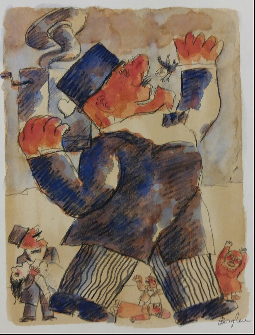Borghese Franz tecnica mista 35x50 Grammofono ammaliatore autentica dell'...