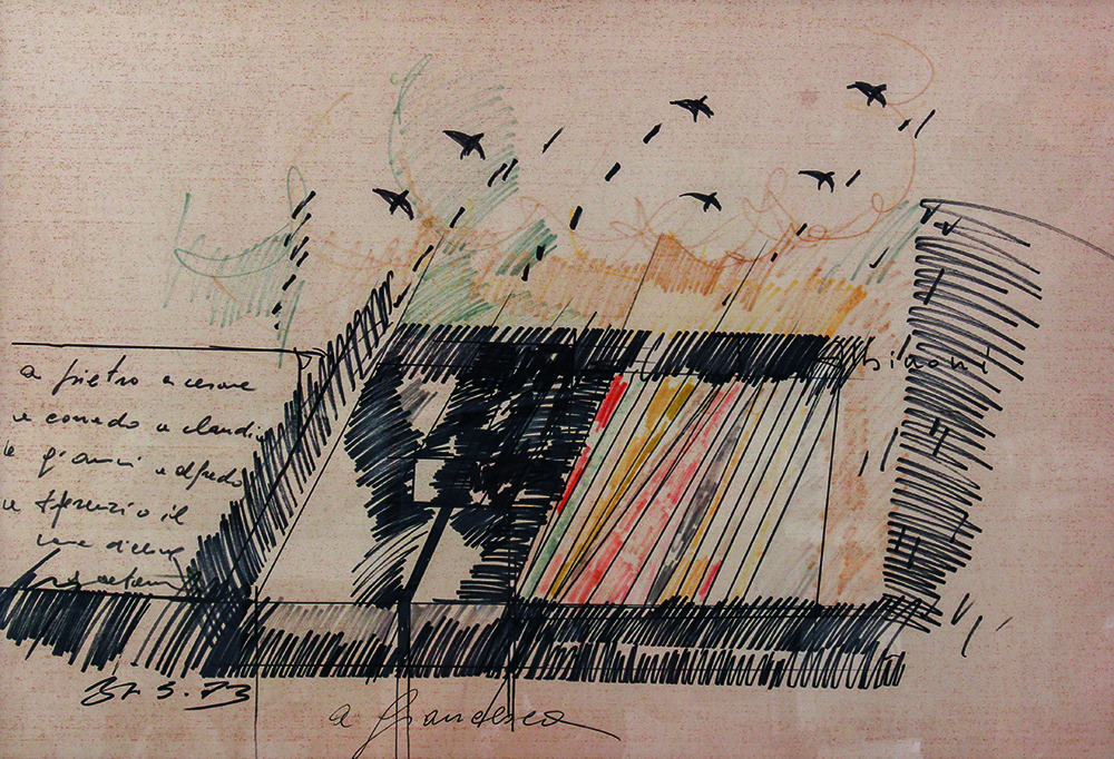 Festa Tano tecnica mista su carta 70x100 Onora il padre e la madre 1973 archivio Soligo