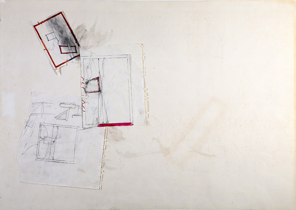 Schifano Mario grafite e collage su carta 70x100 senza titolo 1973 archivio Monica Schifano