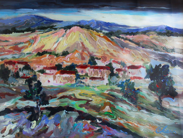 Levi Carlo Olio su tela 61x46 Paesaggio Lucano 1965 archivio Levi