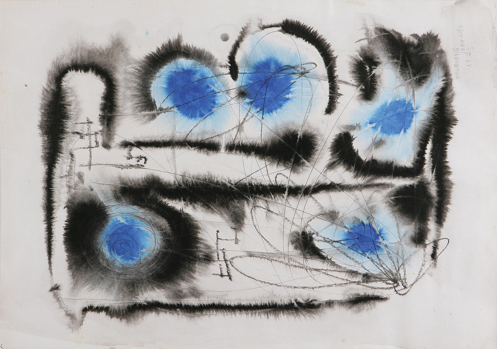 LONCARI FRANCESCO Senza titolo. 1973. Tecnica mista su carta. Cm 70x50. Firma e data a matita in basso a destra.