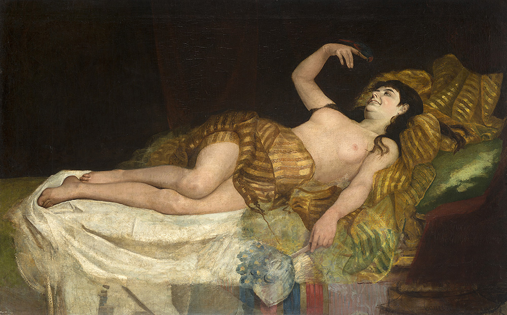 Maestro austriaco del XIX Secolo"Donna con il pappagallo"olio su tela (cm...