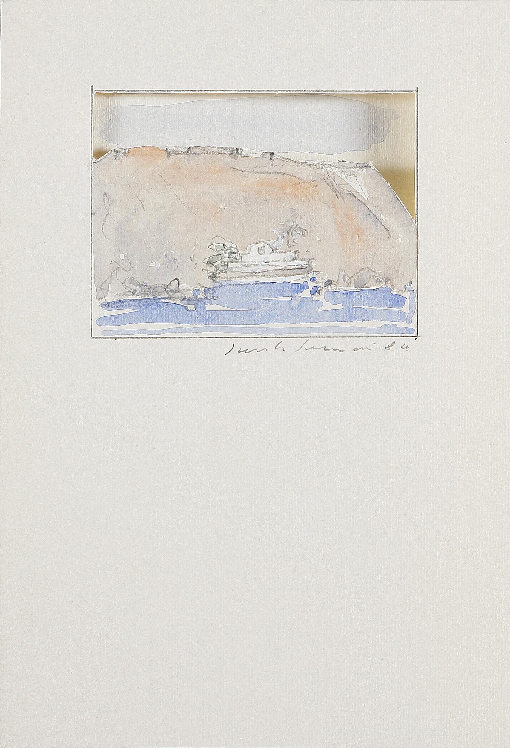 SOMARE' SANDRO (n. 1929) Senza titolo. 1984. Tecnica mista su cartoncino. Cm 16,5x24. Misure disegno: 8 x 10,5. Firma e data a matita in basso a destra.