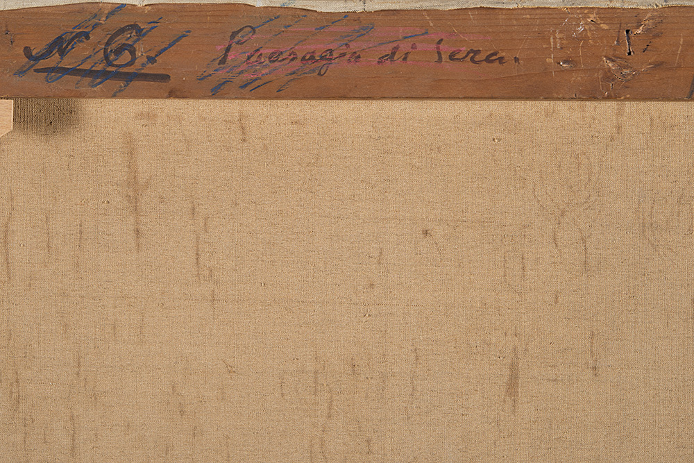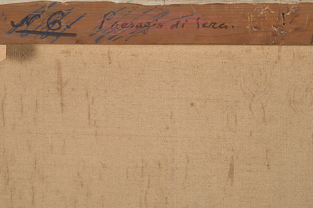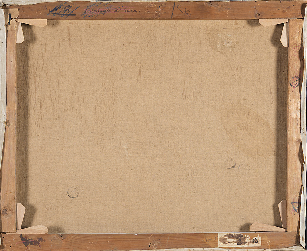 Al retro: cartiglio con titolo in cirillico; titolato sul telaio; timbri