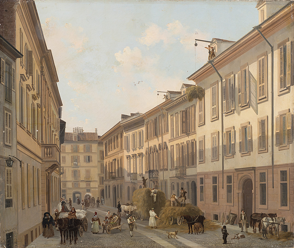 "L'arrivo del foraggio in Via Borgonuovo" 1836