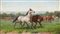 Simone Campanile (Cava dei Tirreni 1826 - Napoli 1896)"Cavalli"olio su tavola...