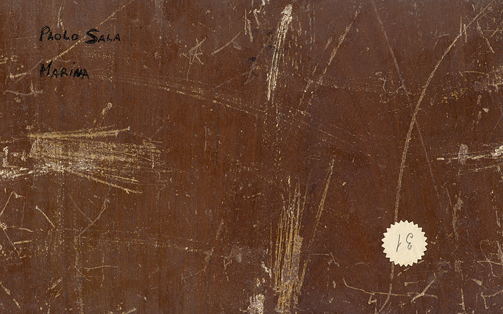 Paolo Sala (Milano 1859 - 1924)"Scorcio lagunare con barca e pescatori" olio...