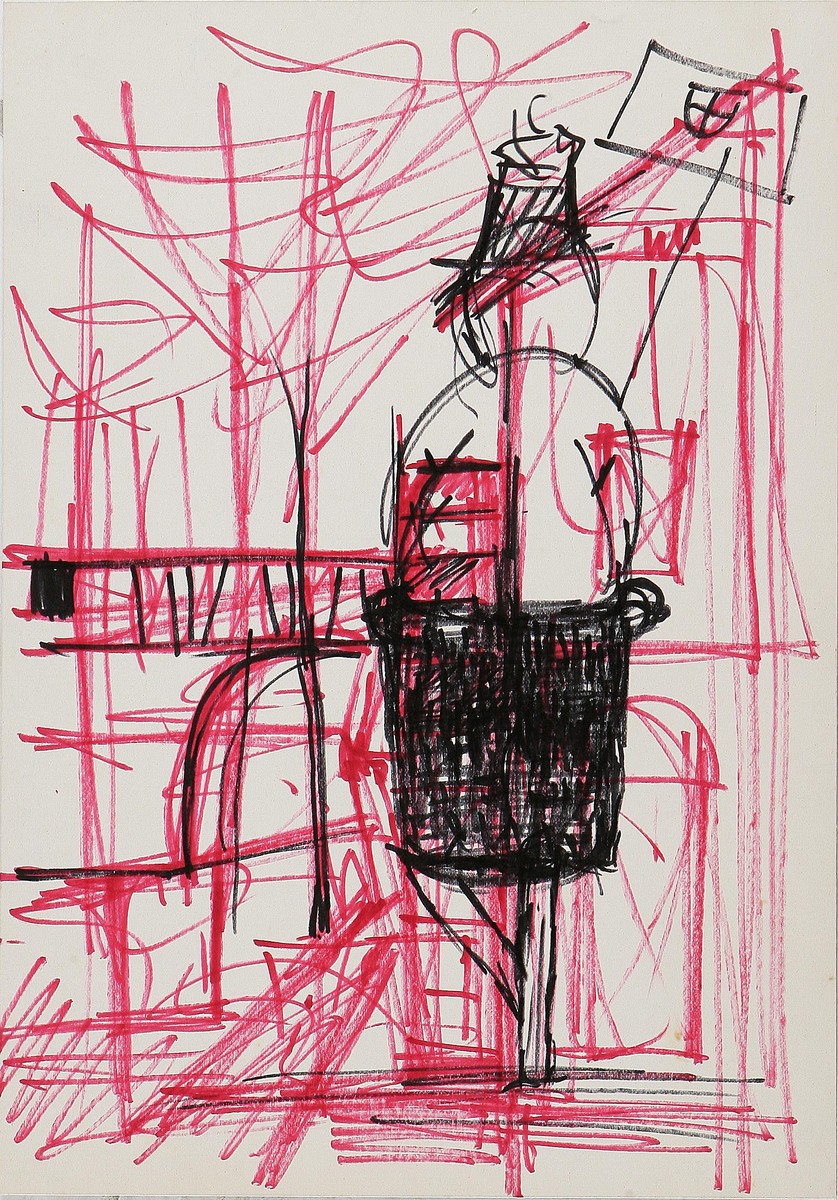 ANONIMO Senza titolo. Pennarello su cartone. Cm 30x42,5. Disegnato fronte - retro. Firma illeggibile in basso a destra.