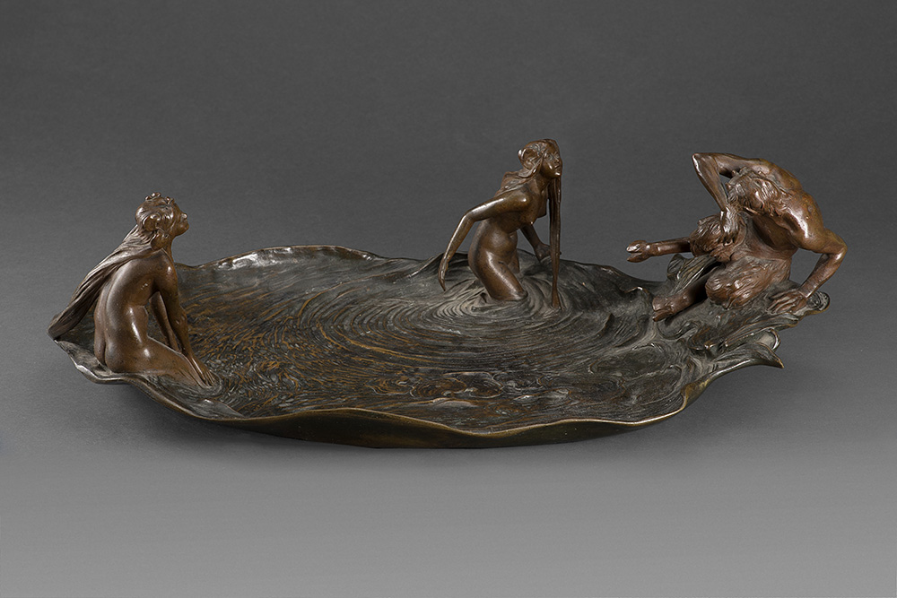 Scultore Liberty mitteleuropeo "Pan e le Ninfe" centrotavola in bronzo (cm...